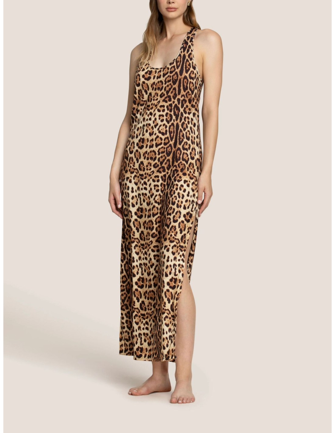 Abito lungo canottiera 4Giveness, scollo rotondo, spacco laterale.