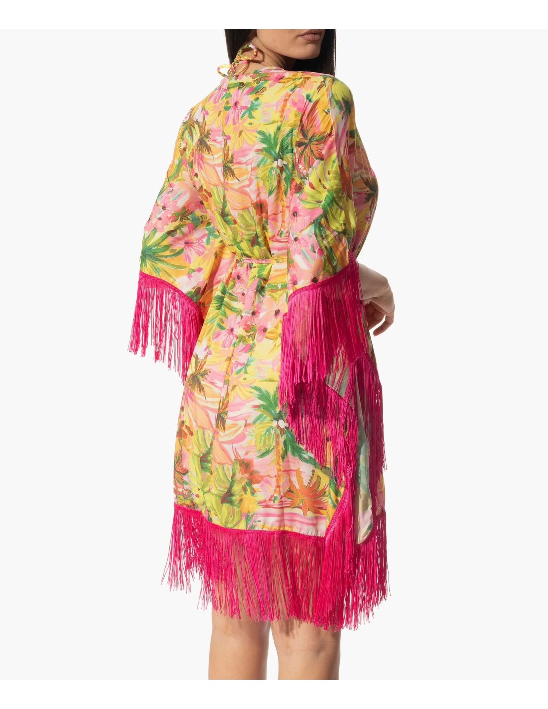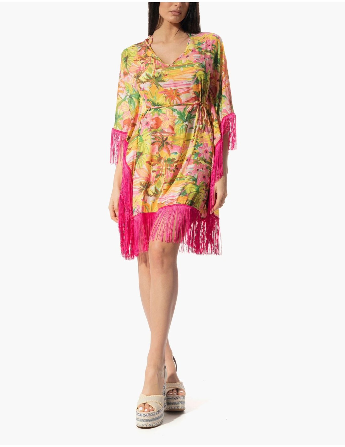 Caftano frangia 4Giveness, scollo a V, con cinturina.