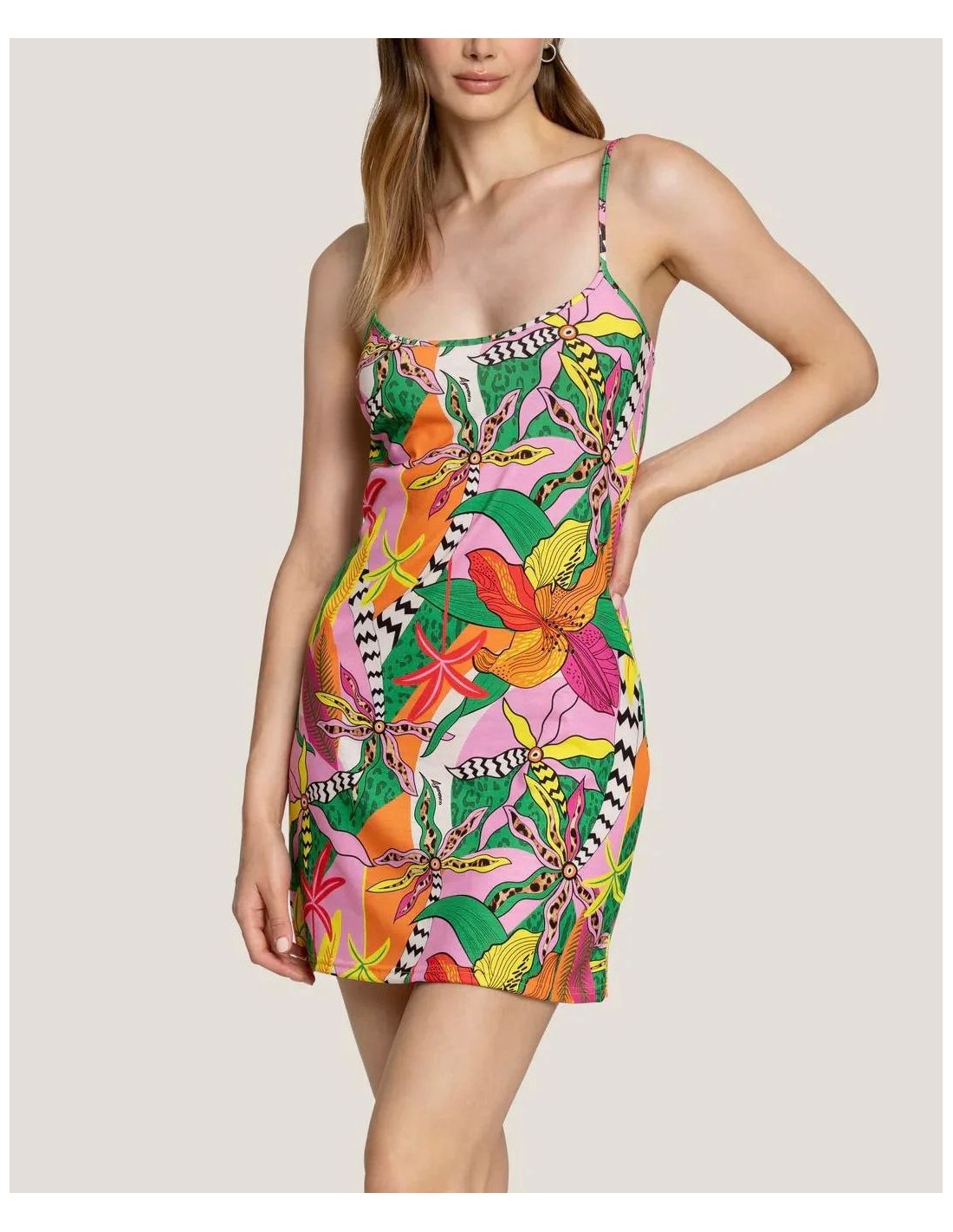 Abito corto fasano 4Giveness, con bretelle, fantasia.