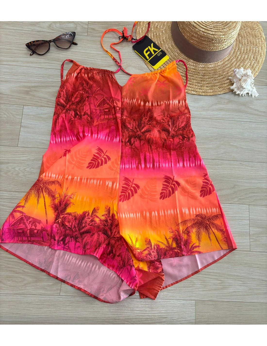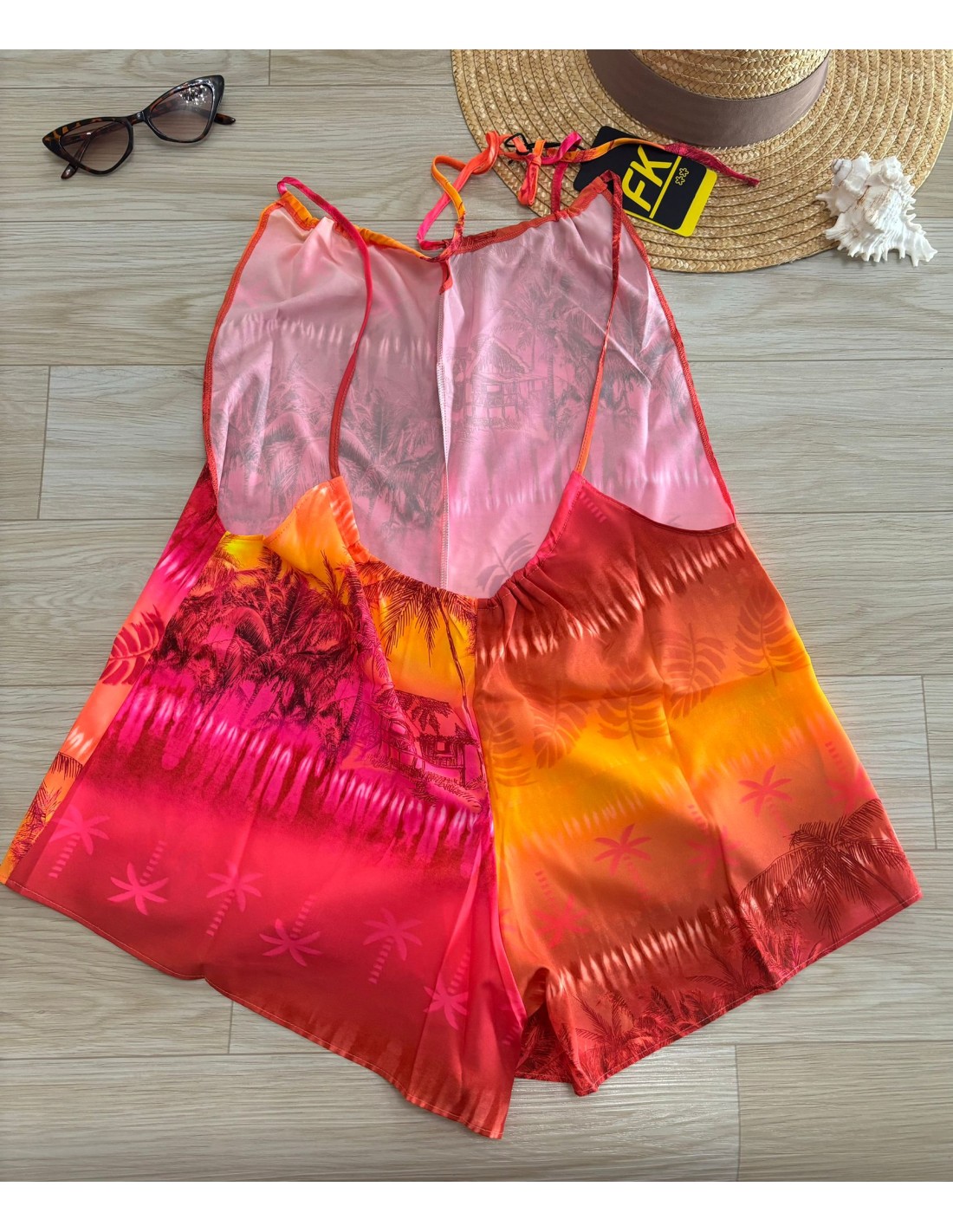 Tutina arancio F**K, si allaccia al collo, schiena scoperta.