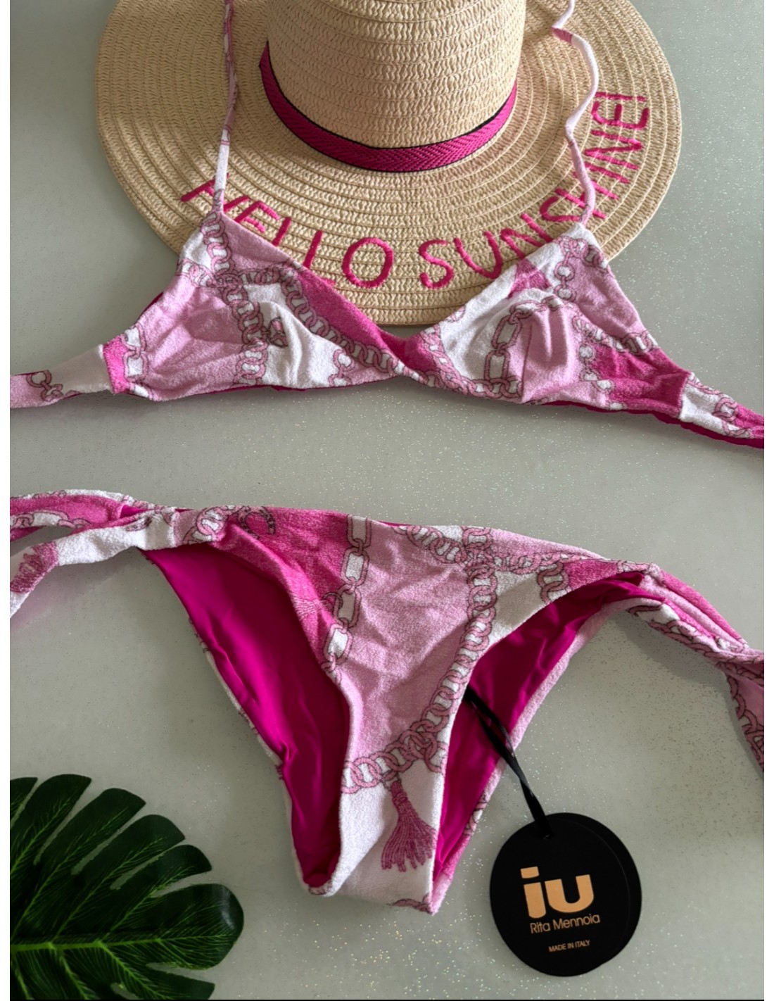 Bikini brassiera Rita Mennoia, senza coppe, slip con fiocchi regular, in spugna.