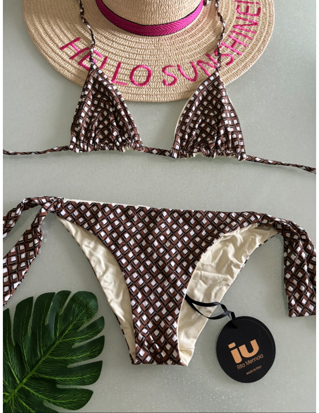 Bikini a quadri Rita Mennoia, triangolo senza coppe, slip.
