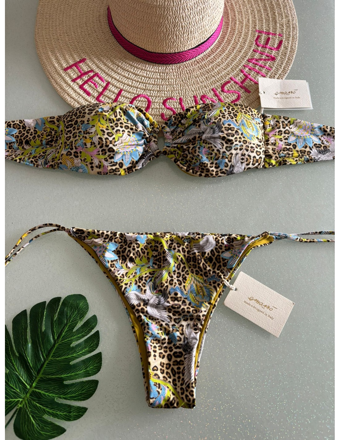 Bikini a fascia Emamò, coppe estraibili, slip con laccetti brasiliana.