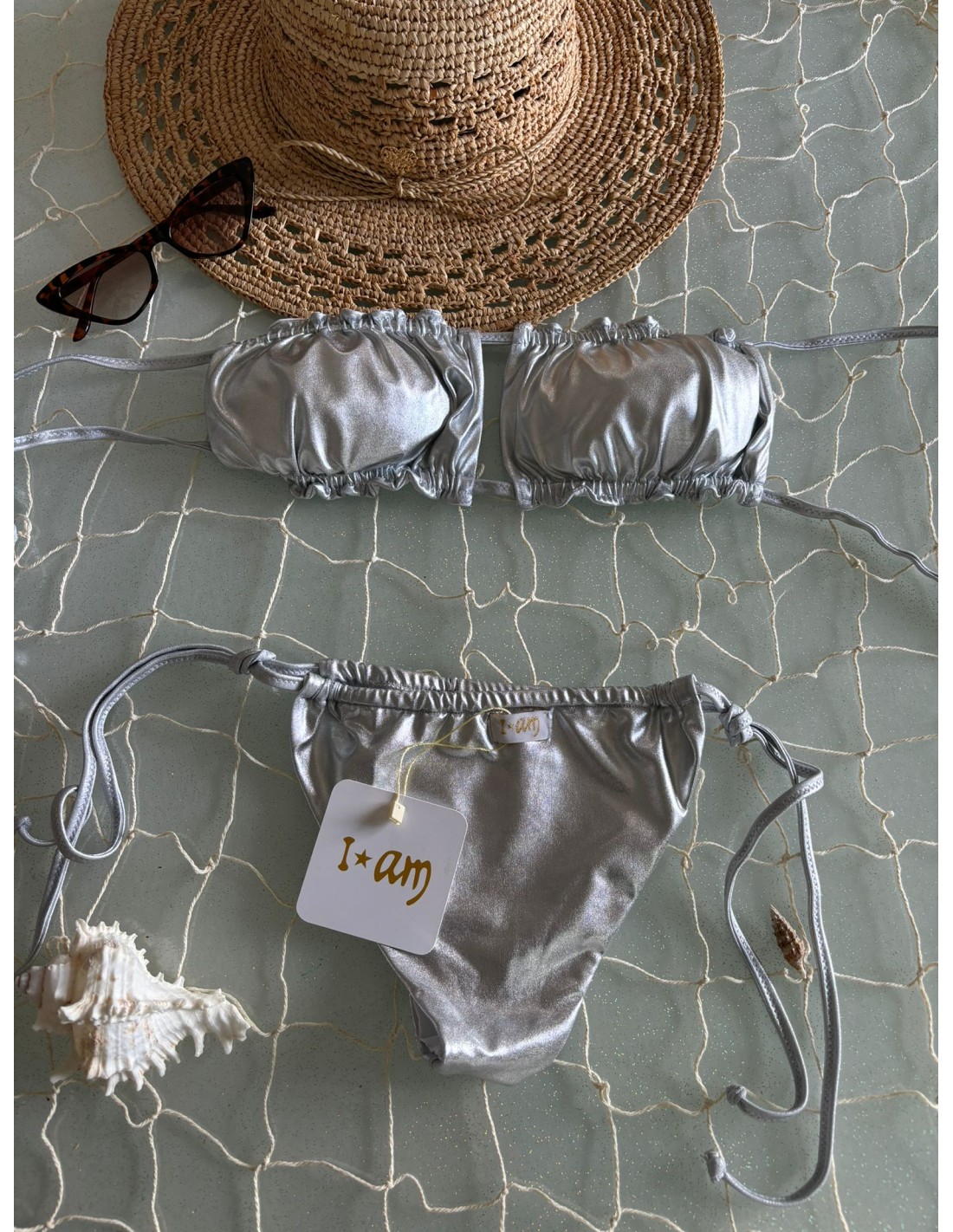 Bikini a fascia laminato I AM, coppe estraibili regolabile, slip con laccetti brasiliana. Veste regolare