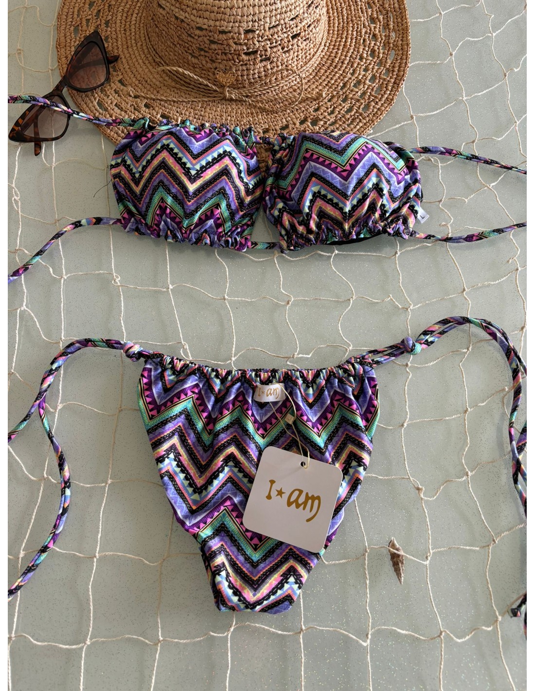 Bikini a fascia lilla I AM, coppe estraibili, slip con laccetti regolabili brasiliana.