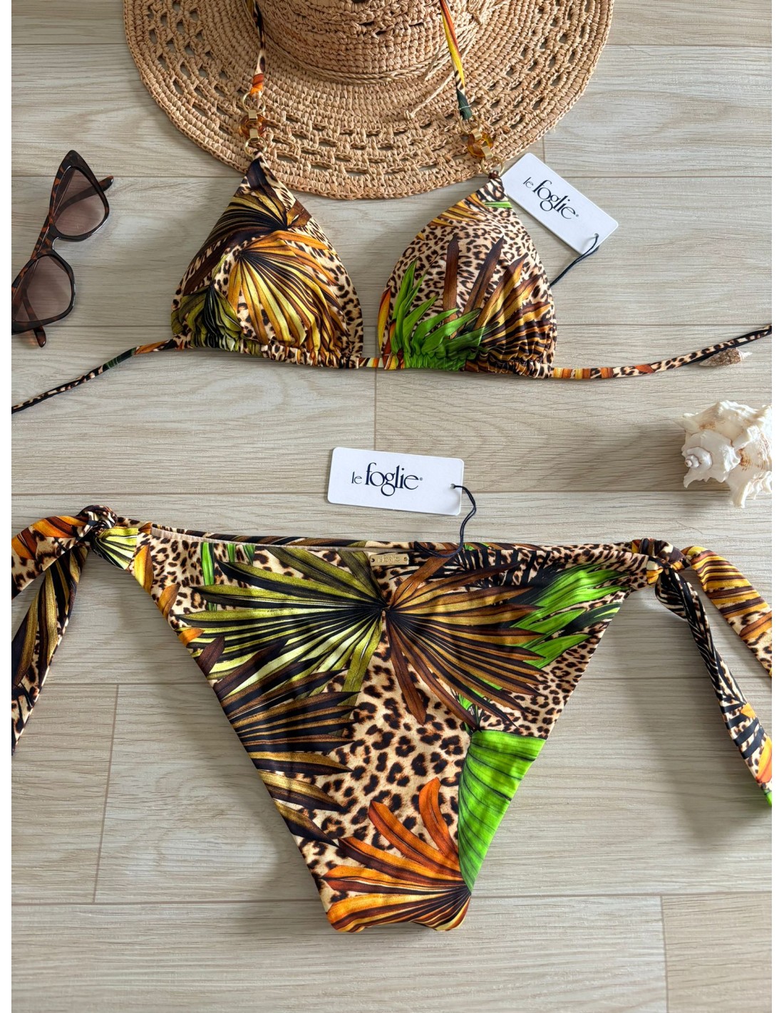 Bikini fantasia Le foglie, triangolo coppe estraibili, slip.