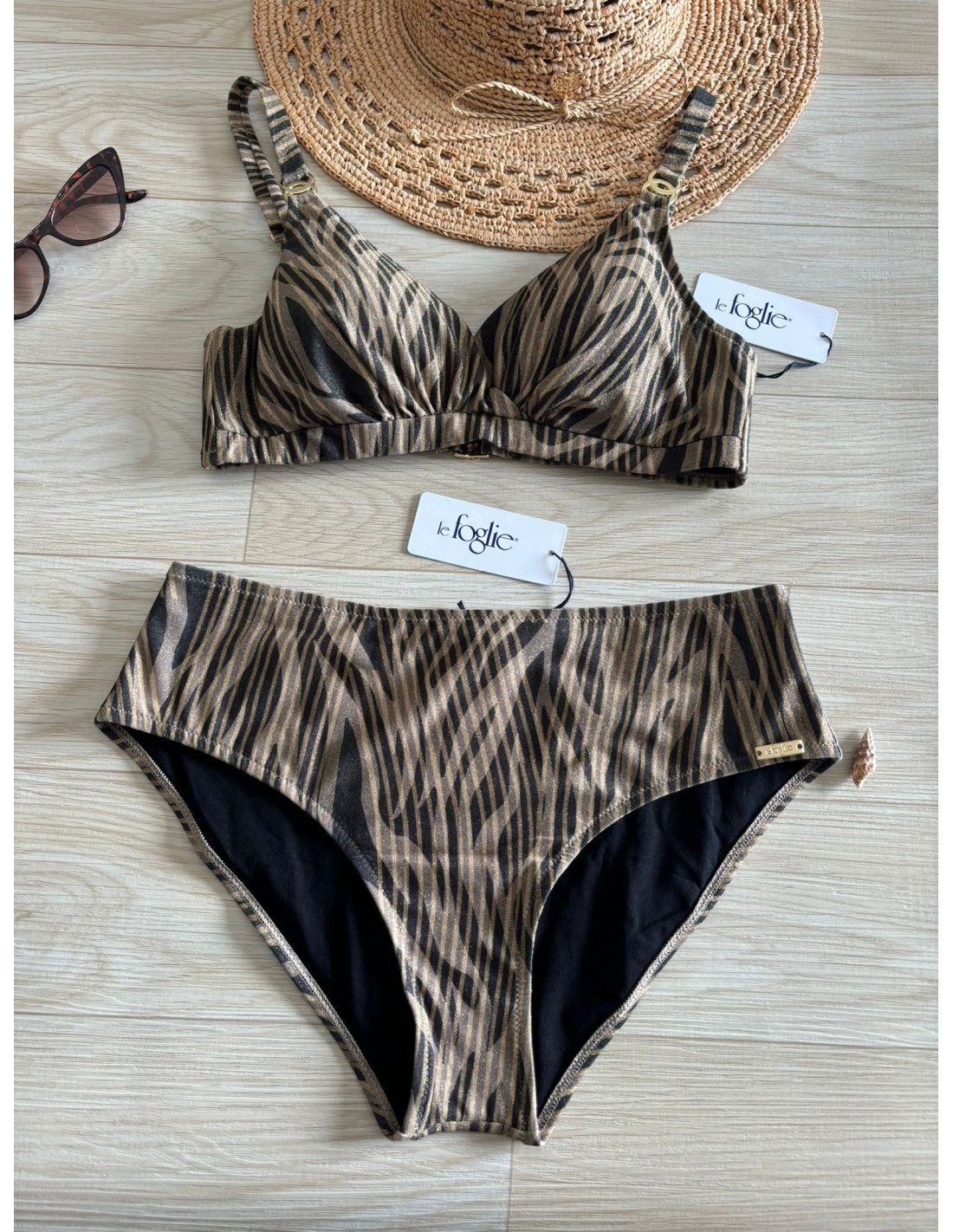Bikini a brassiere Le foglie, coppe estraibili, slip.