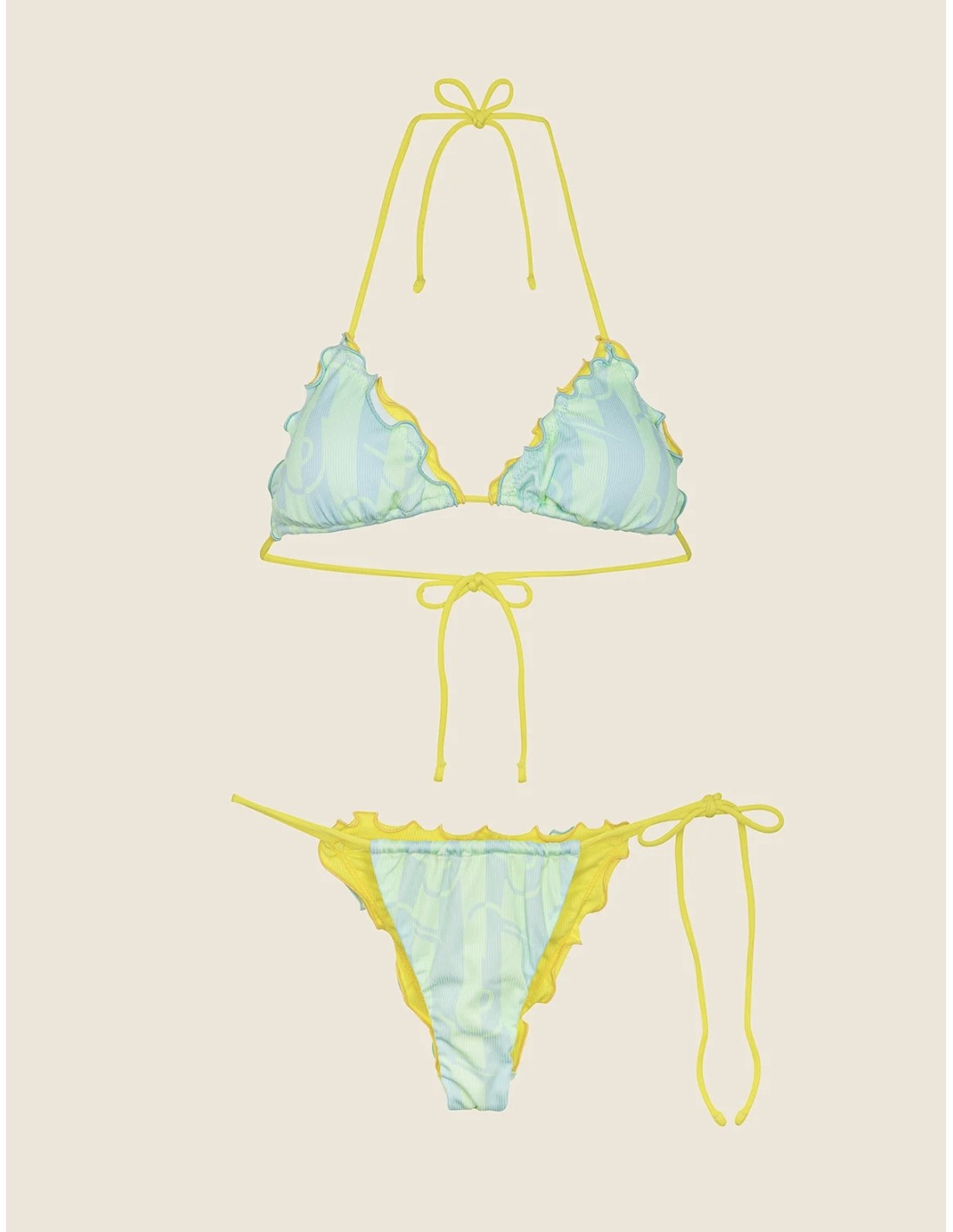 Bikini a triangolo F**K, coppe estraibili, slip regolabile con laccetti brasiliana.