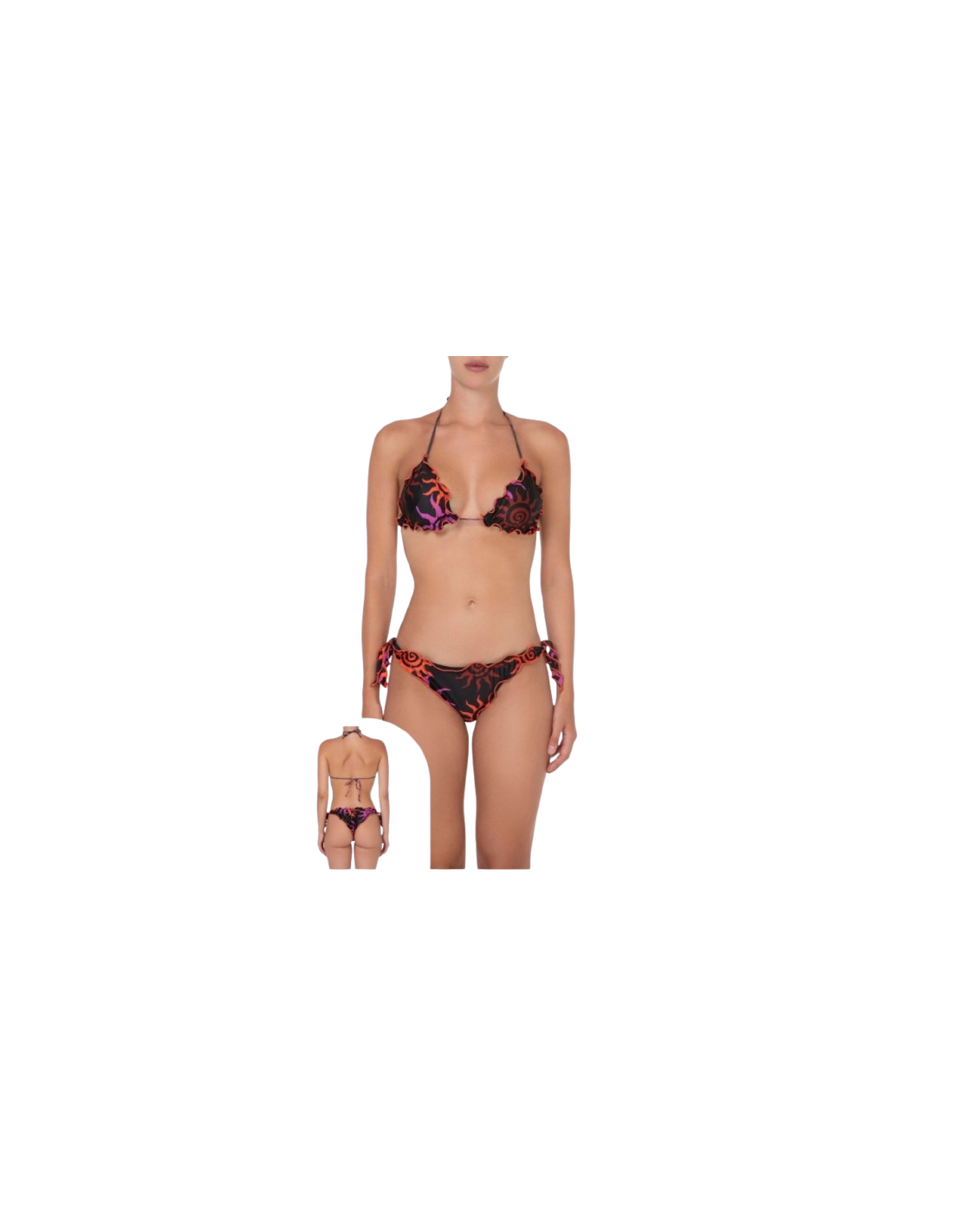 Bikini nero F**K, triangolo coppe estraibili, slip con fiocchi arricciato.