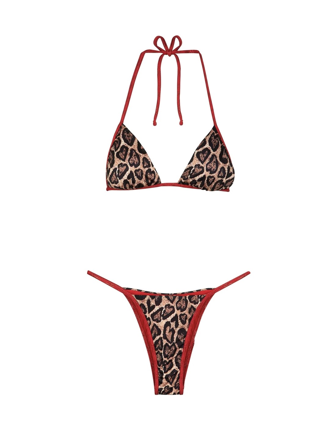 Bikini maculato F**K, triangolo coppe estraibili, slip fisso brasiliana.