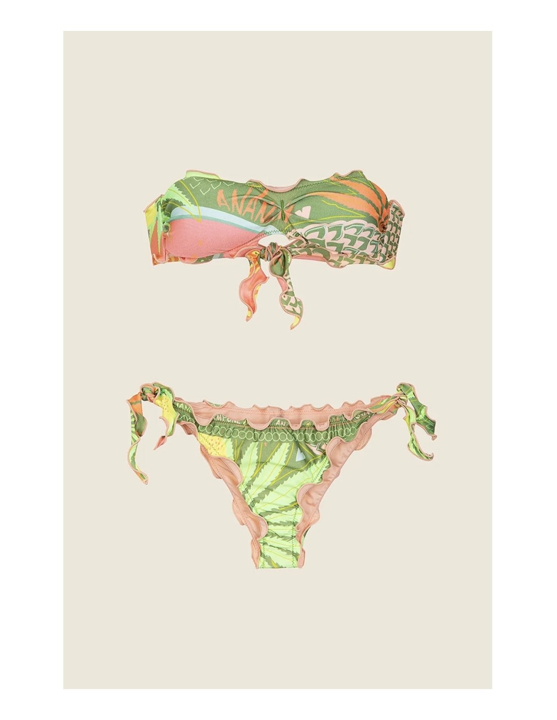 Bikini a fascia F**K, coppe estraibili, slip con arriccio.