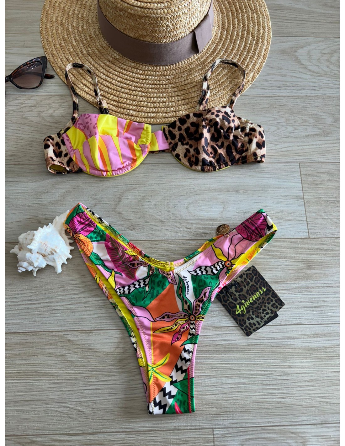 Bikini balconcino 4Giveness, con ferretto, bretelle regolabili, slip fisso brasiliana.