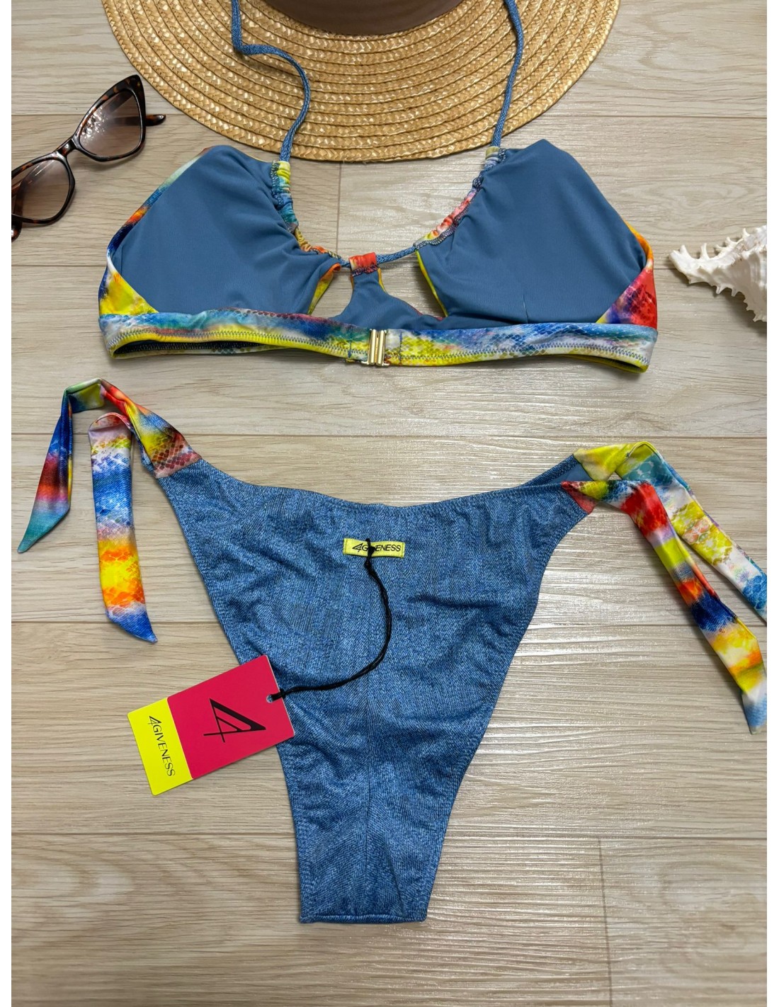 Bikini python shades 4Giveness, fascia coppe estraibili e slip con fiocchi brasiliana.
