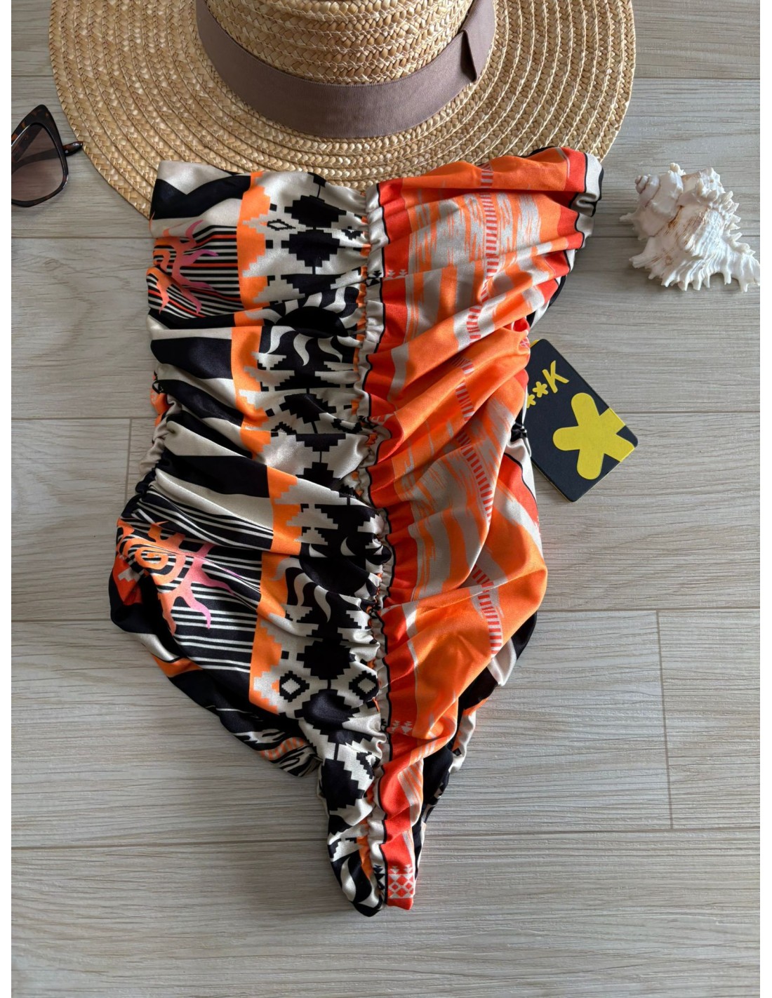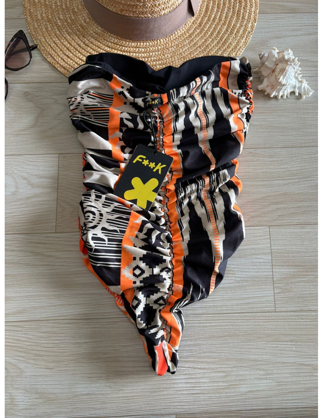 Intero multicolor F**K, coppe estraibili, slip brasiliana.