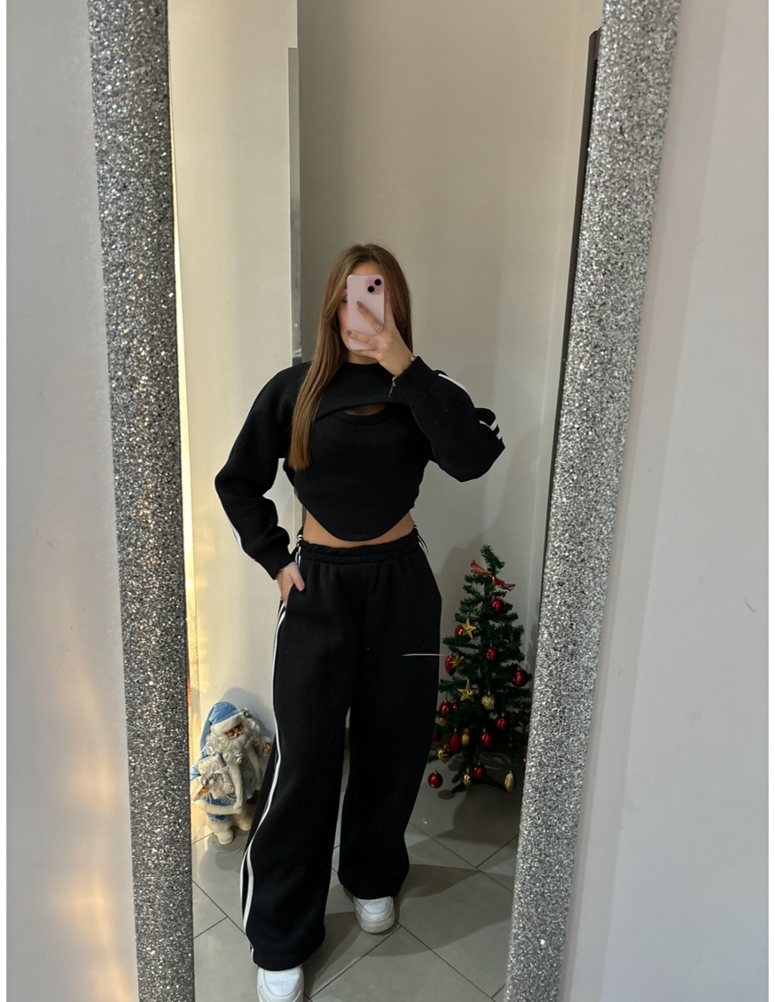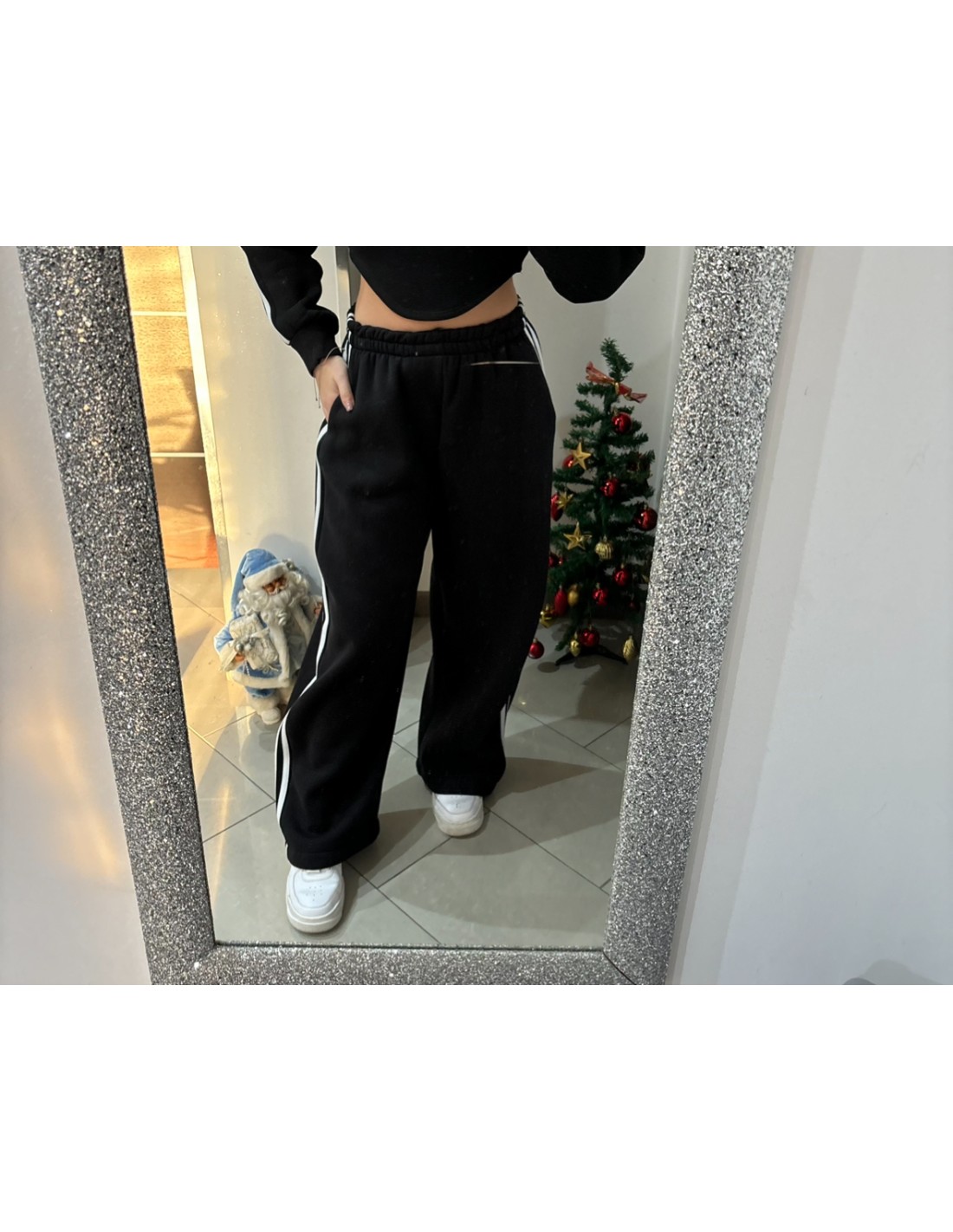 Coordinato tre pezzi tuta, canotta con felpa e pantalone a palazzo con elastico, felpato all'interno.