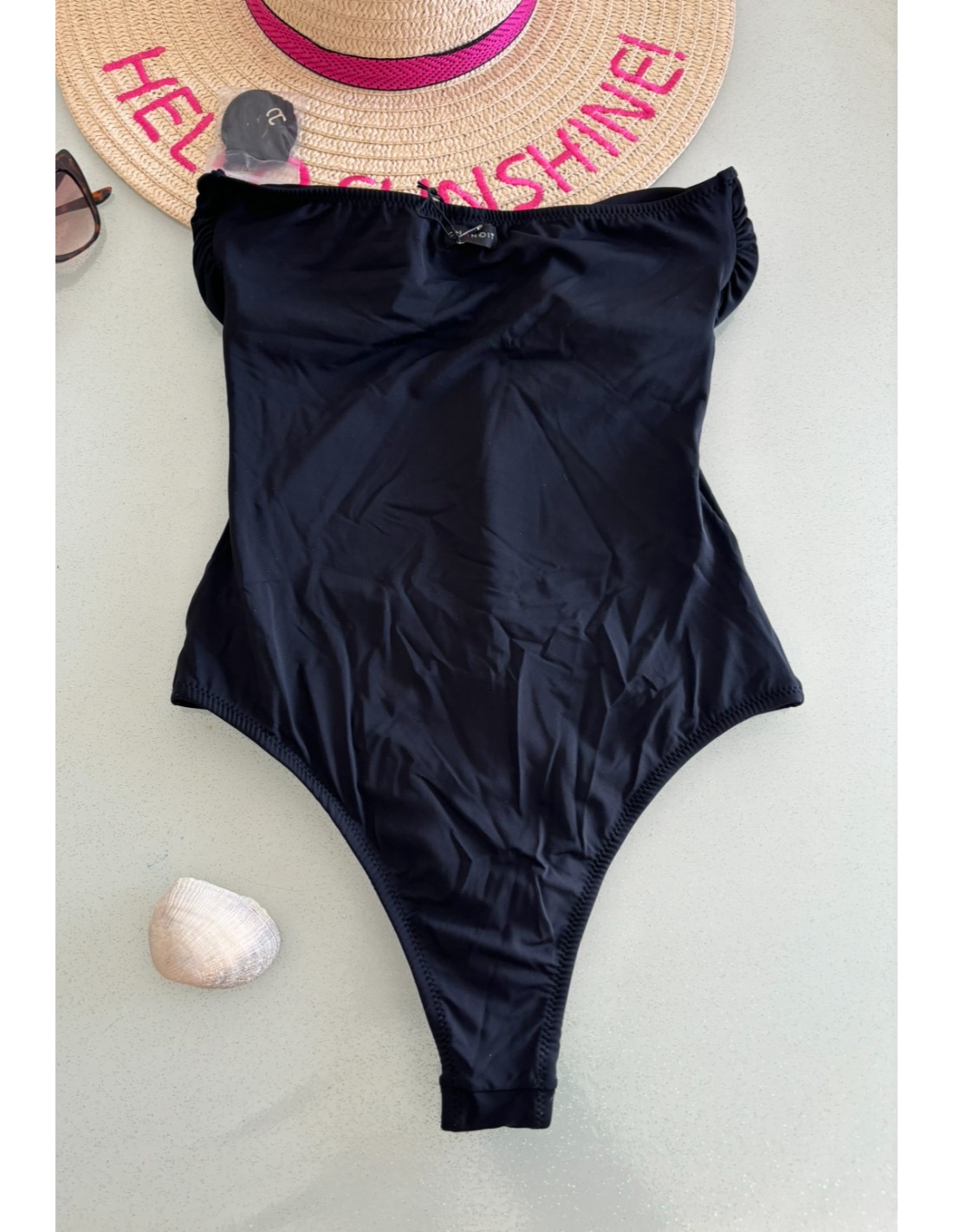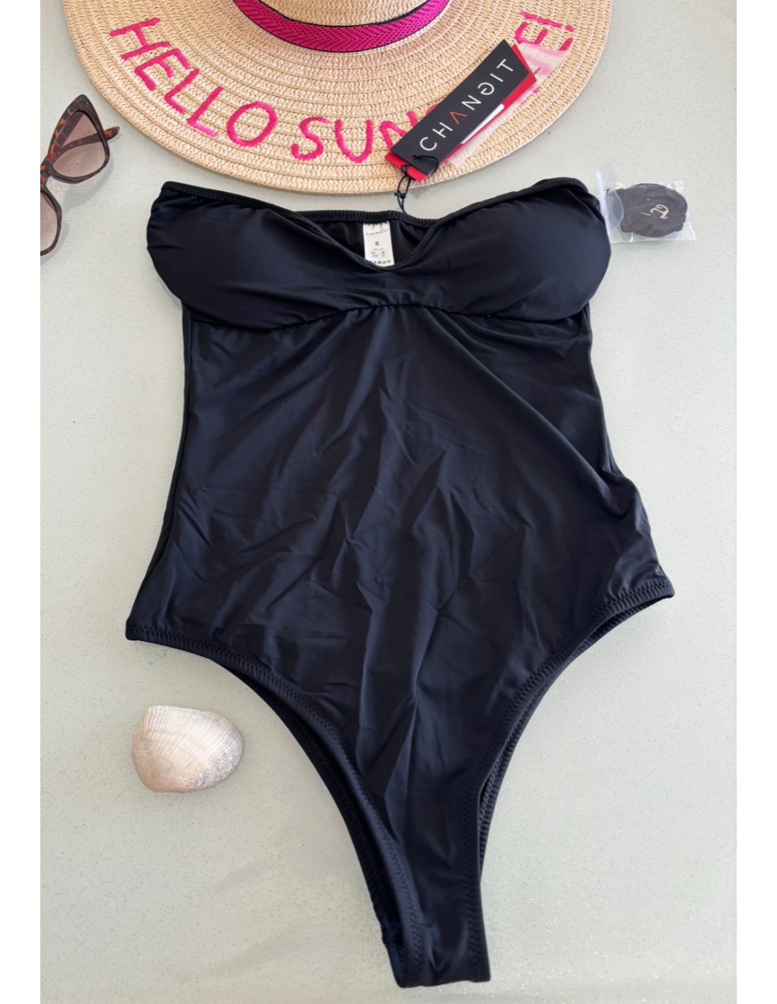 Intero nero Changit, coppe estraibili, con laccetti, slip brasiliana.