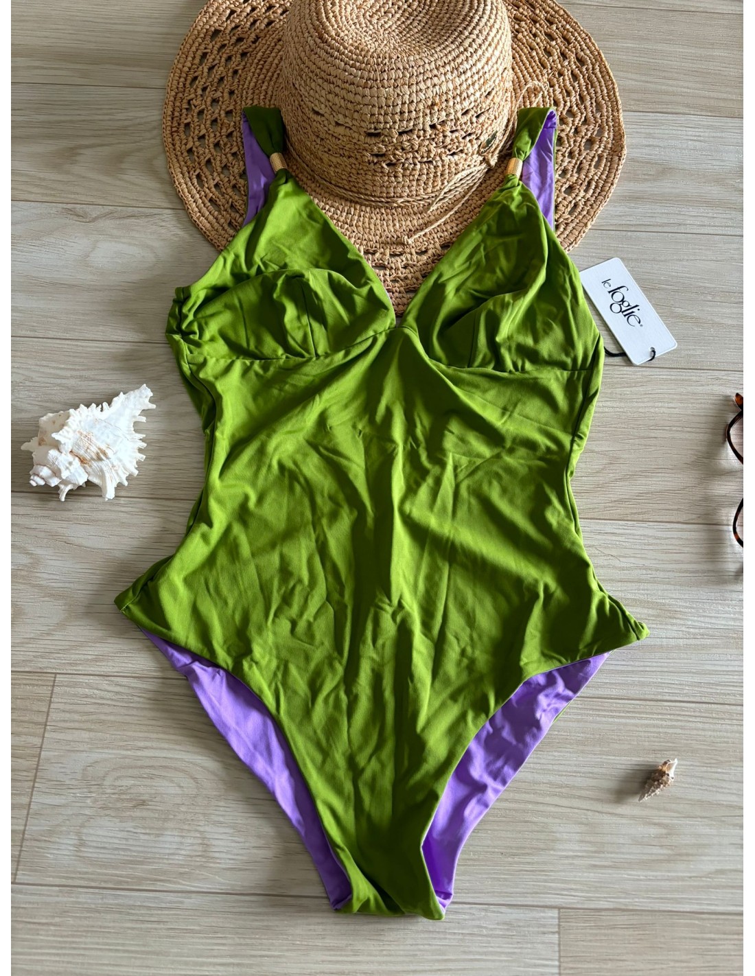Intero doubleface Le foglie, senza coppe, slip semplice, veste regolare.