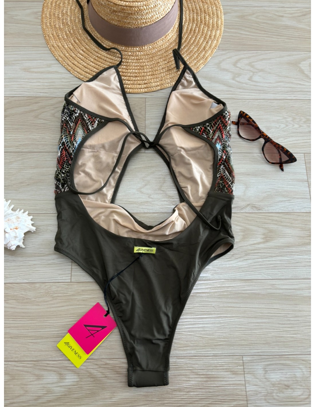 Intero geometrical net 4Giveness, coppe estraibili, slip semplice.