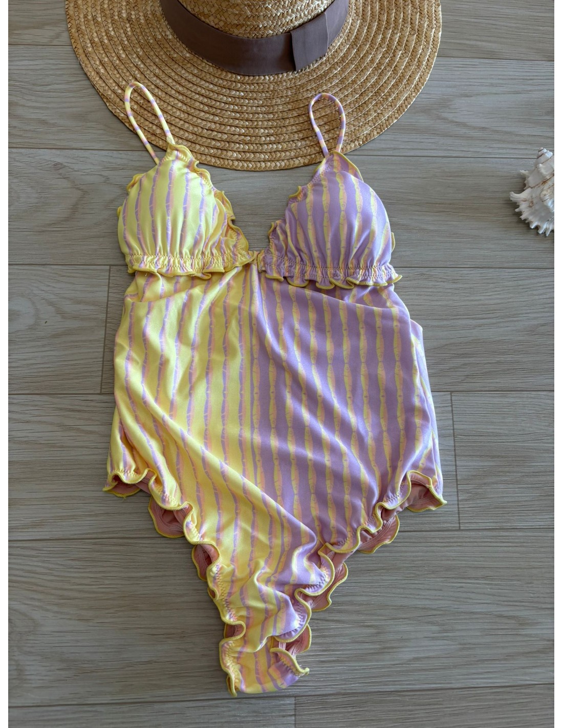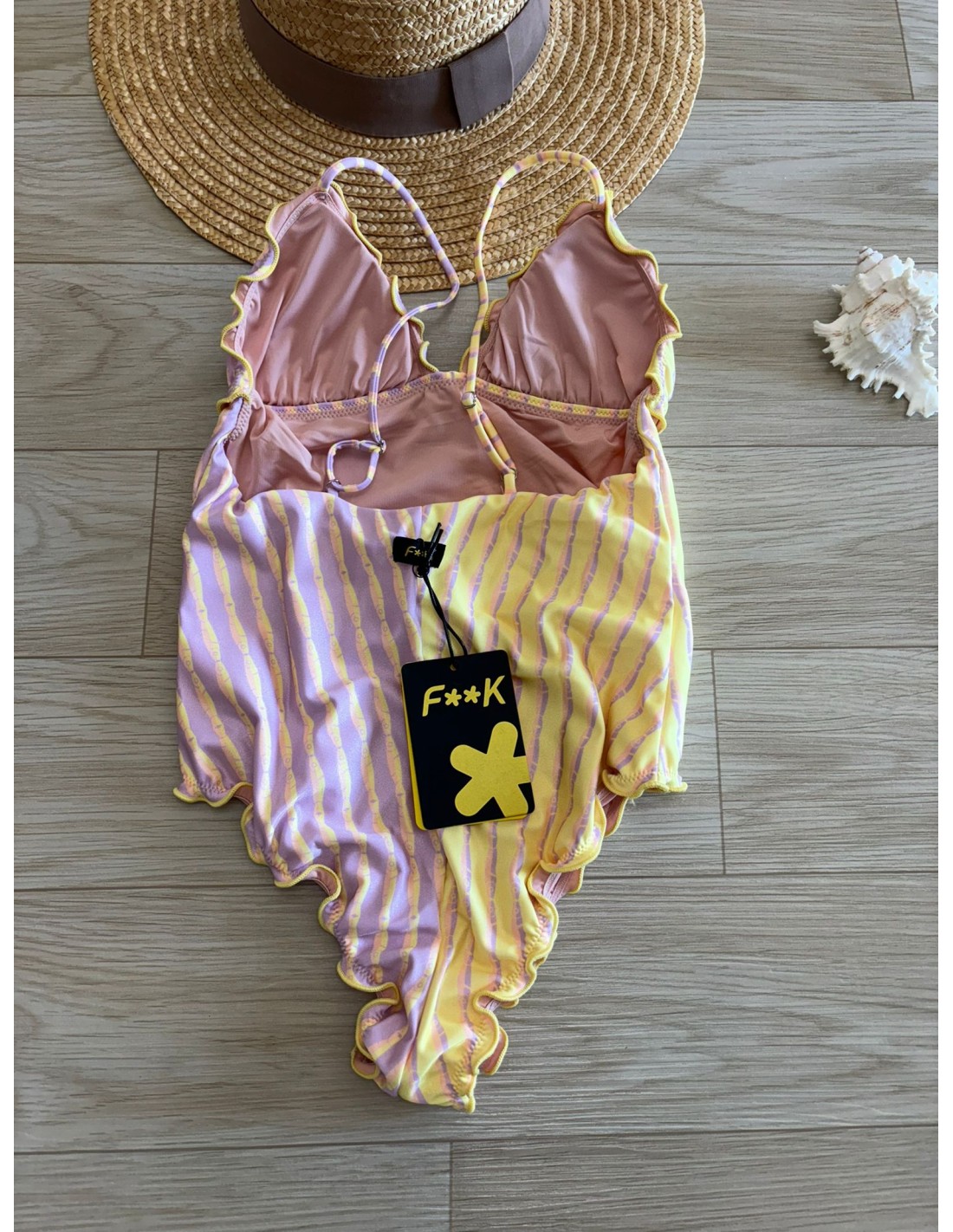 Intero bicolor F**K, coppe estraibili, bretelle regolabili, slip arricciato.