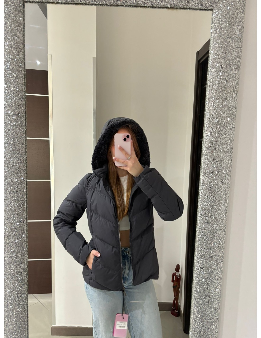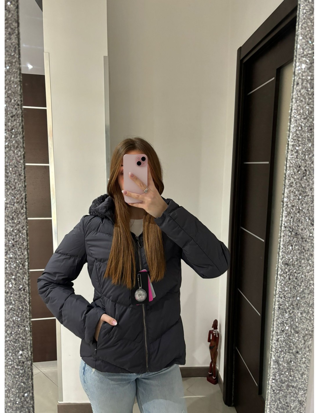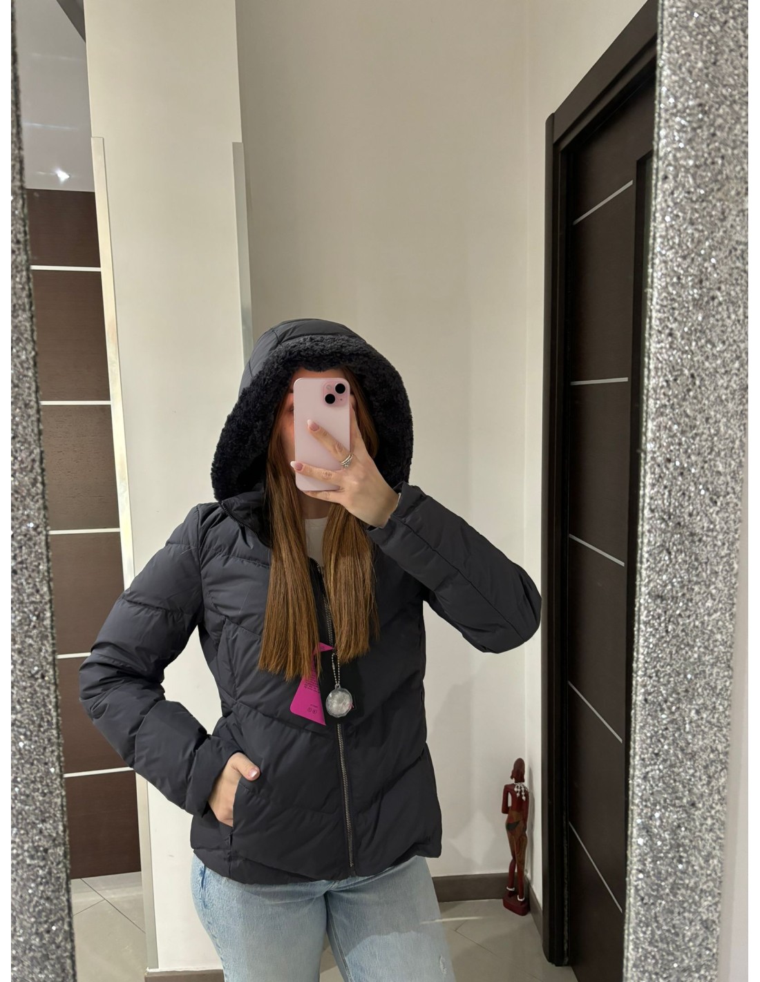 Piumino pelliccia Nolita, chiusura con zip e bottoni, piuma d'oca, tasche laterali con zip, cappuccio rimovibile.