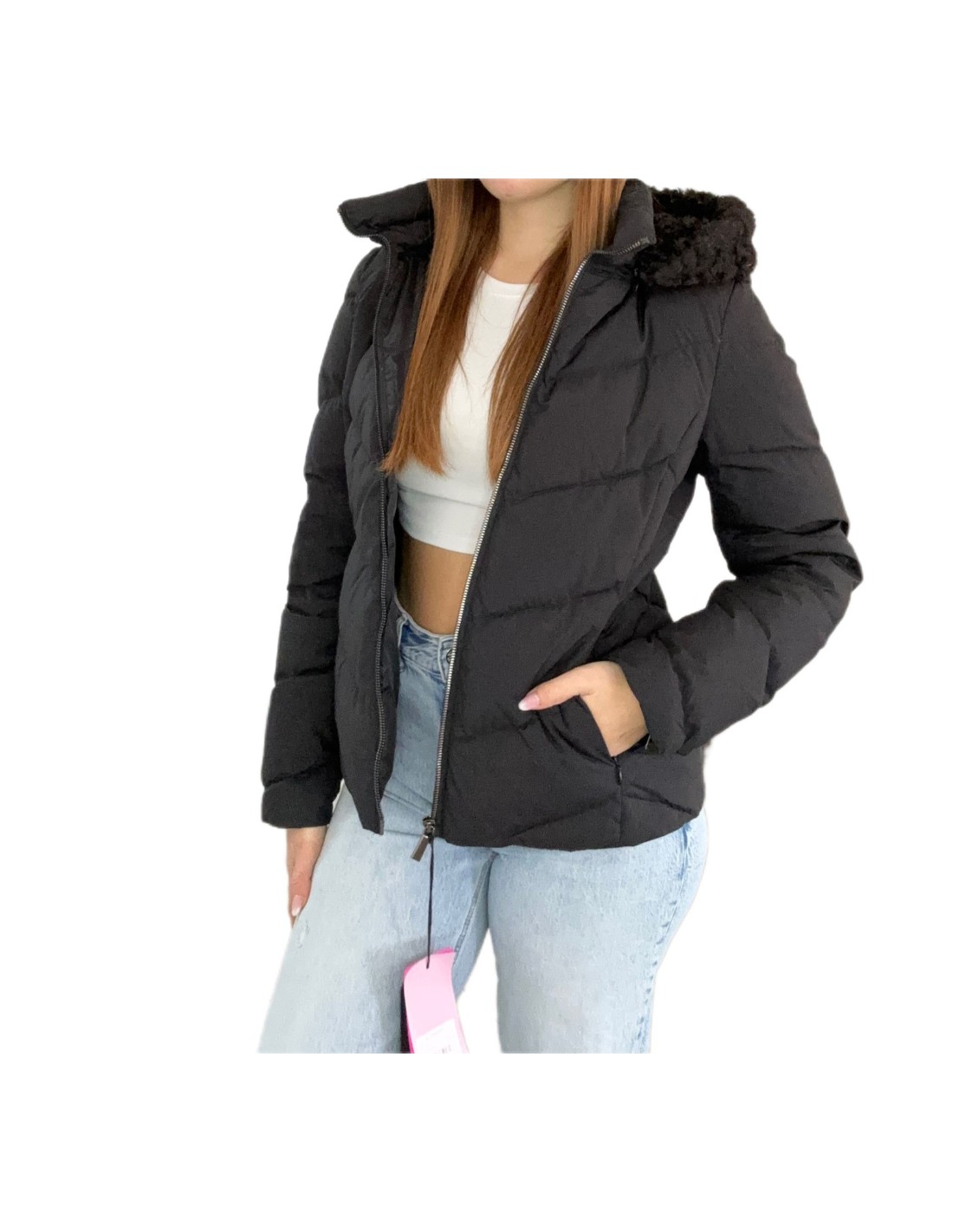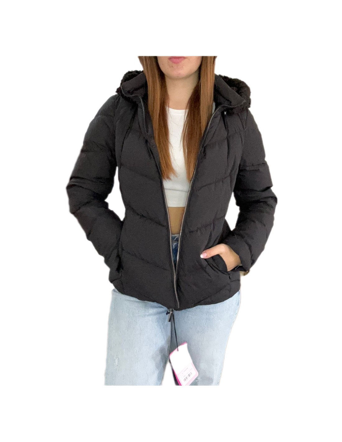 Piumino pelliccia Nolita, chiusura con zip e bottoni, piuma d'oca, tasche laterali con zip, cappuccio rimovibile.