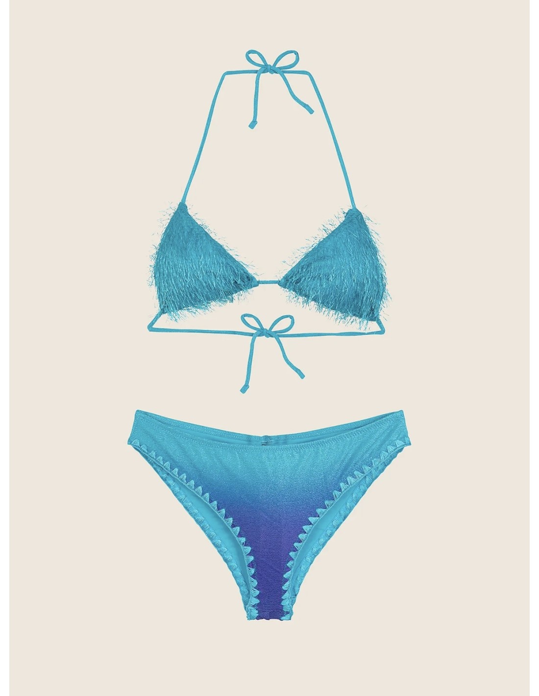 Bikini sfumato F**K, triangolo coppe estraibili, slip fisso coulotte.