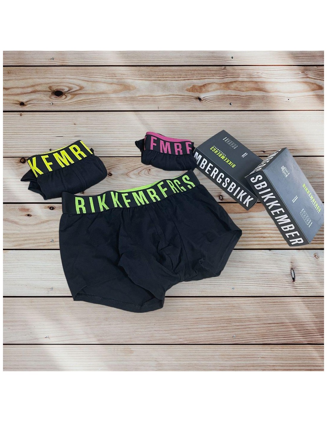 Boxer uomo neri Tri-pack Bikkembergs con elastico fluo.