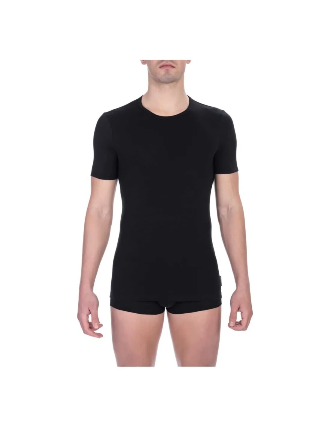 T-shirt bi-pack nera Bikkembergs, girocollo, manica corta, con logo, 95% cotone 5% elastane.