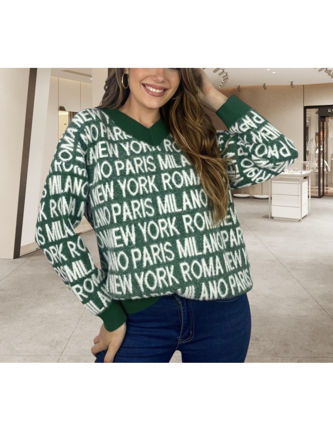 Maglione donna Gretha Milano, manica lunga, scollo a v.