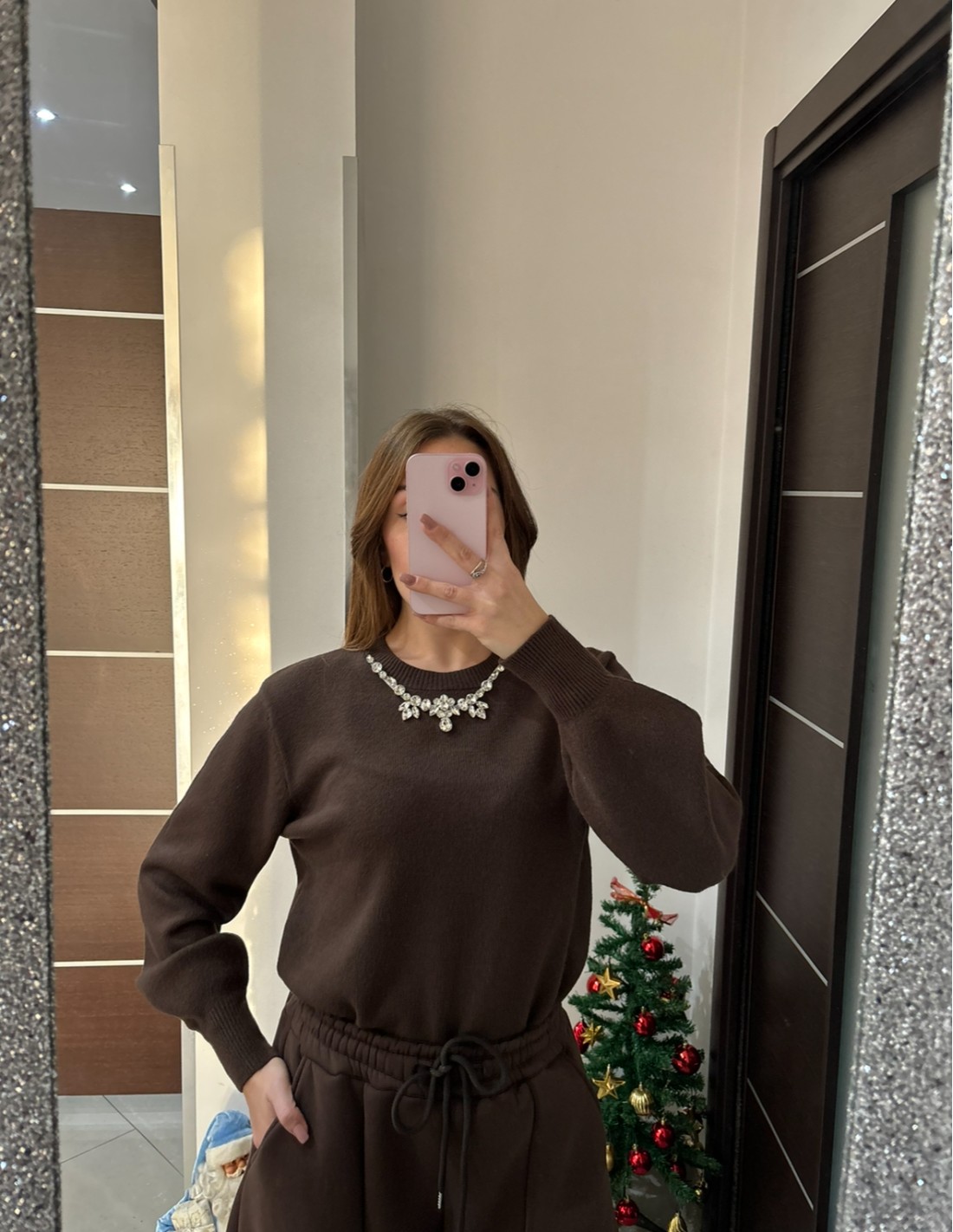 Maglione gioiello, vari colori, girocollo, manica lunga, con polsini.