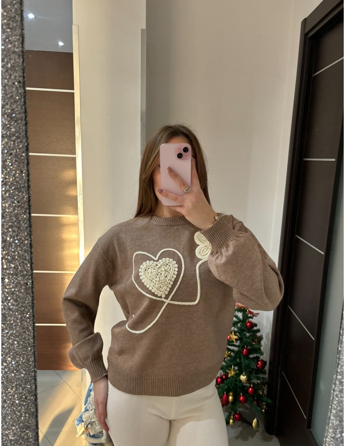 Pull con ricami, manica lunga, girocollo, polsini, lunghezza basic.