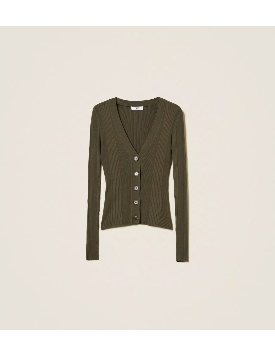 Cardigan verde Twinset, manica lunga, scollo a V, lunghezza basic.