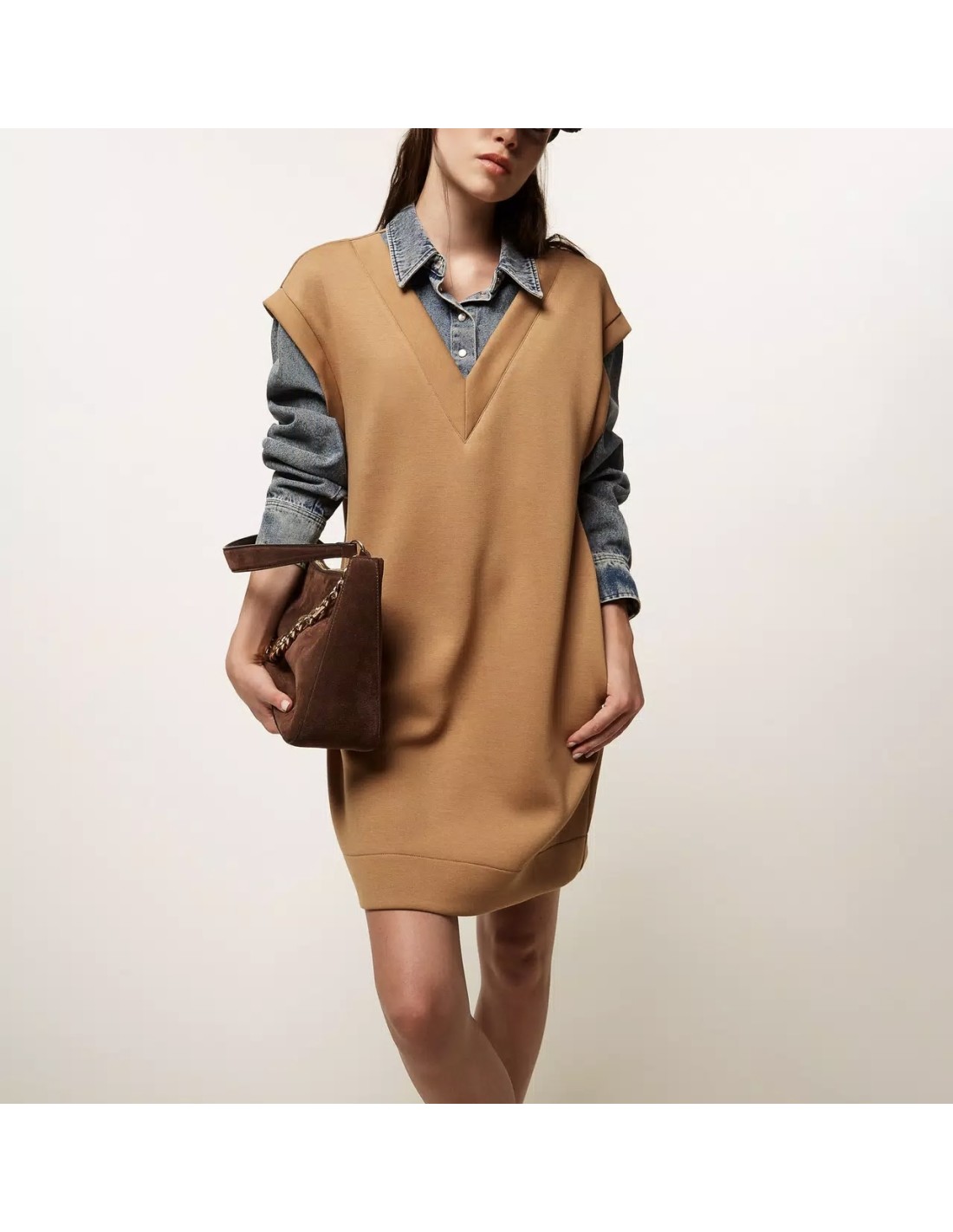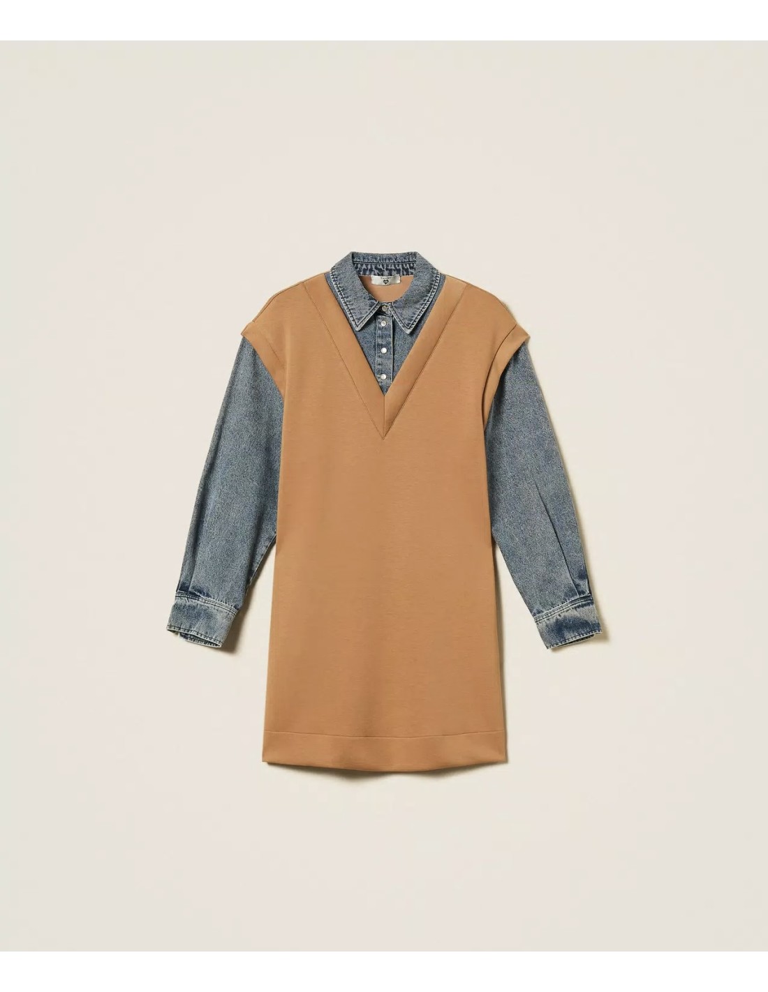 Abito corto in tessuto scuda e jeans Twinset, con colletto e scollatura a V.