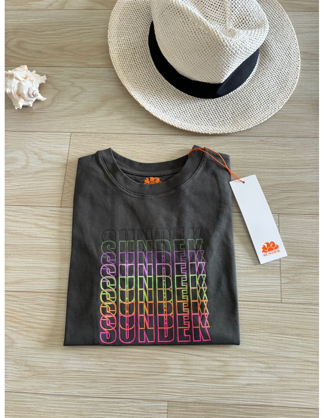 T-shirt green Sundek, girocollo, mezza manica, logo, 100% cotone.