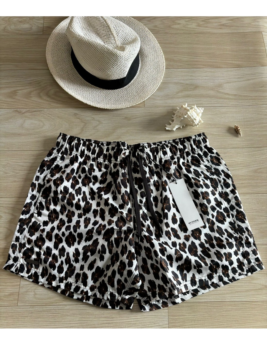 Costume animalier Sundek, con elastico e lacci, tasche laterali e una sul retro, slip interno con rete.