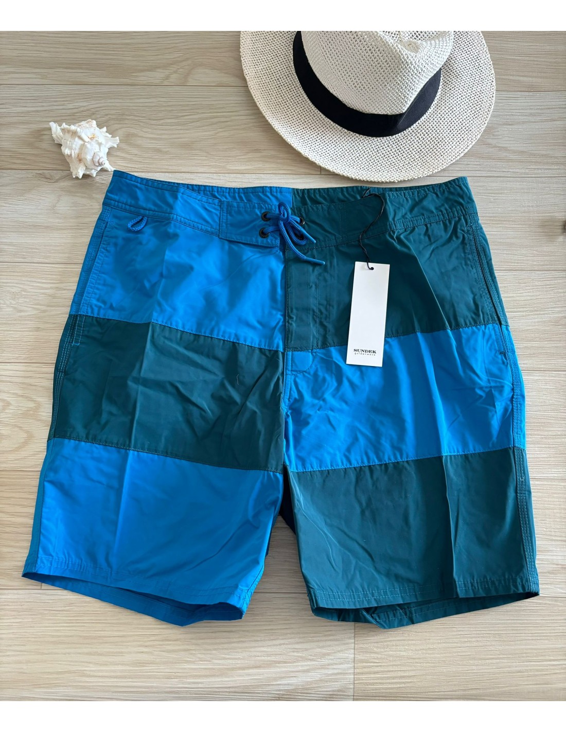 Costume uomo Peacock Sundek, vita fissa, modello lungo, tasca sul retro, slip interno con rete.