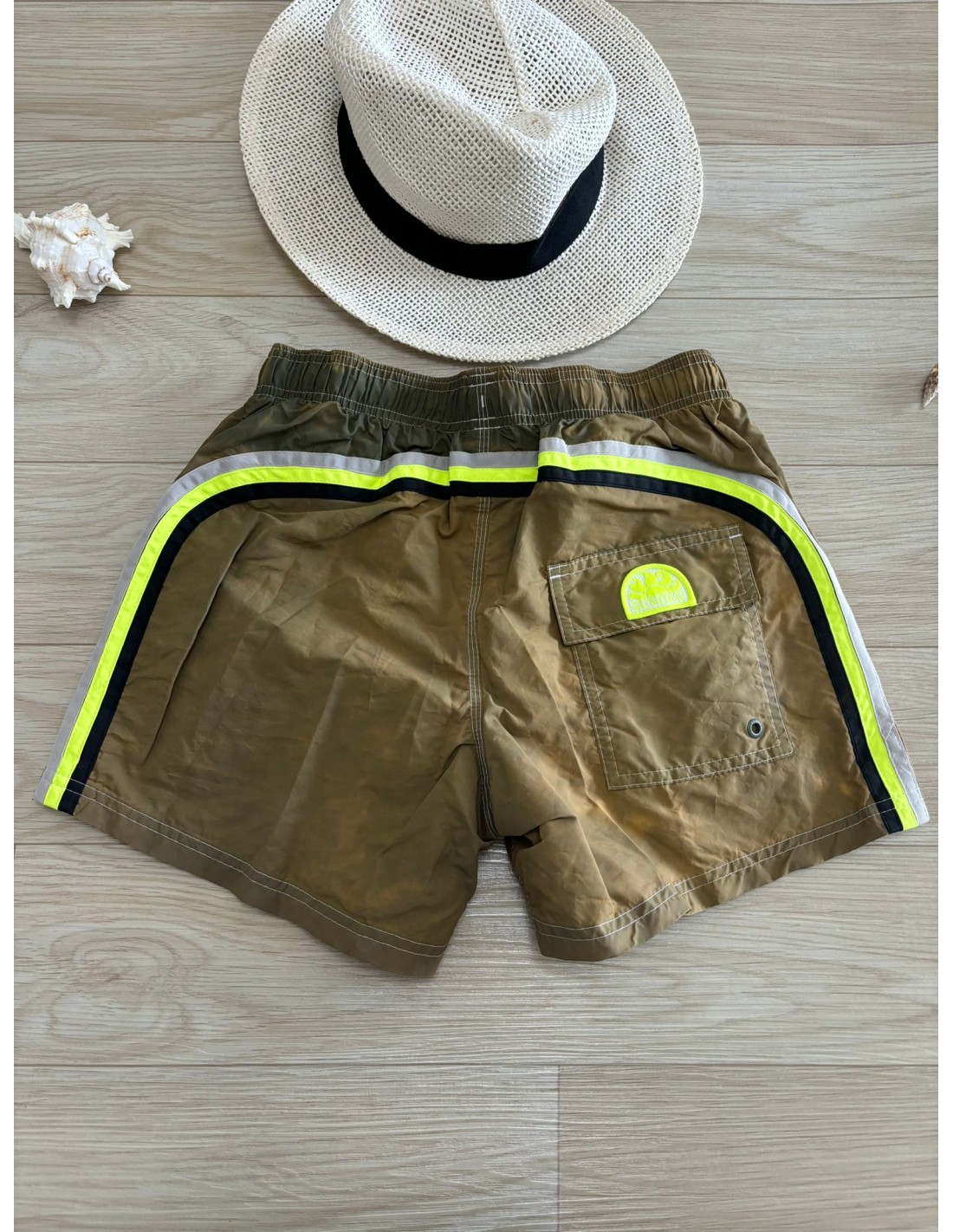 Costume uomo dark Sundek, con elastico e lacci, tasche laterali e una sul retro, slip interno con rete.